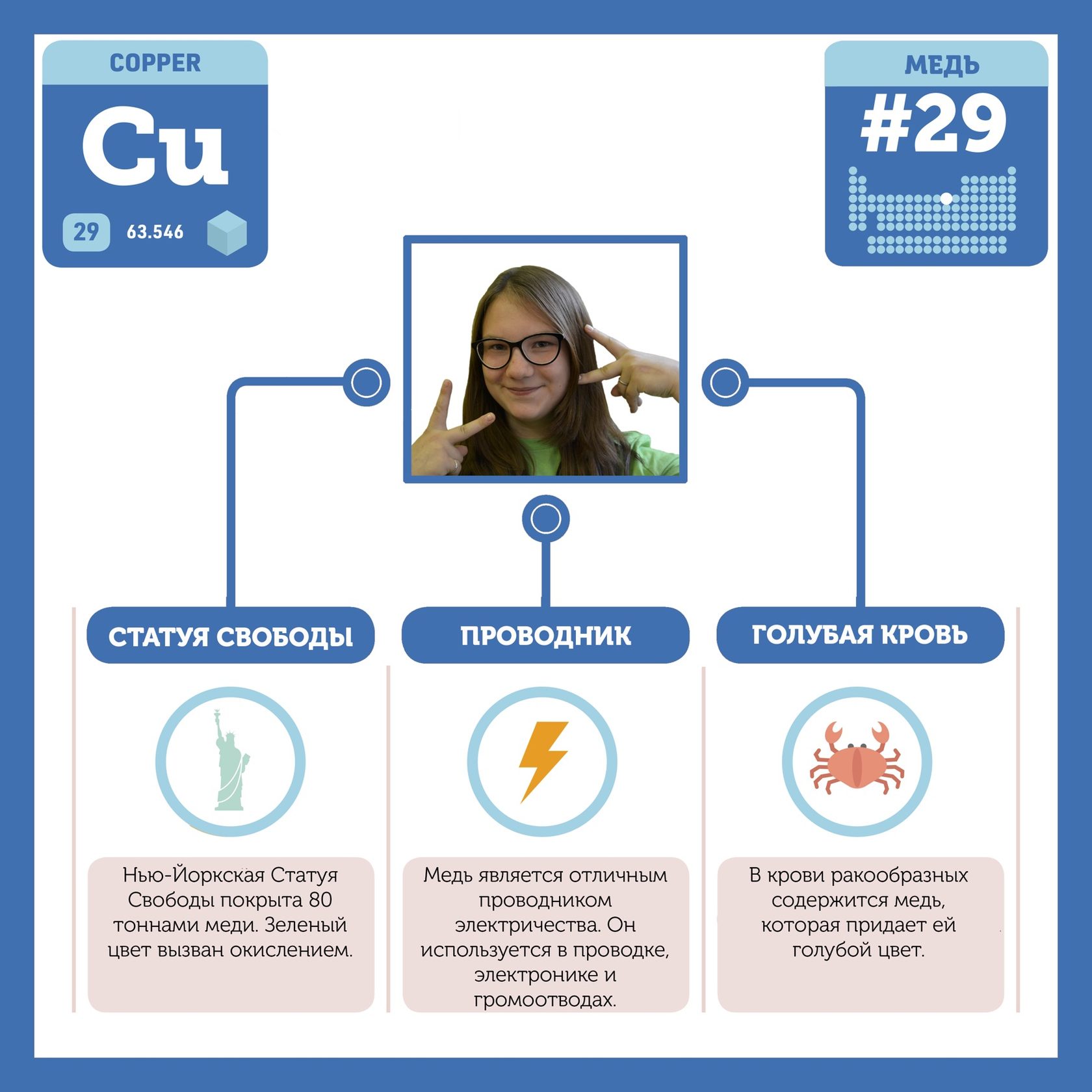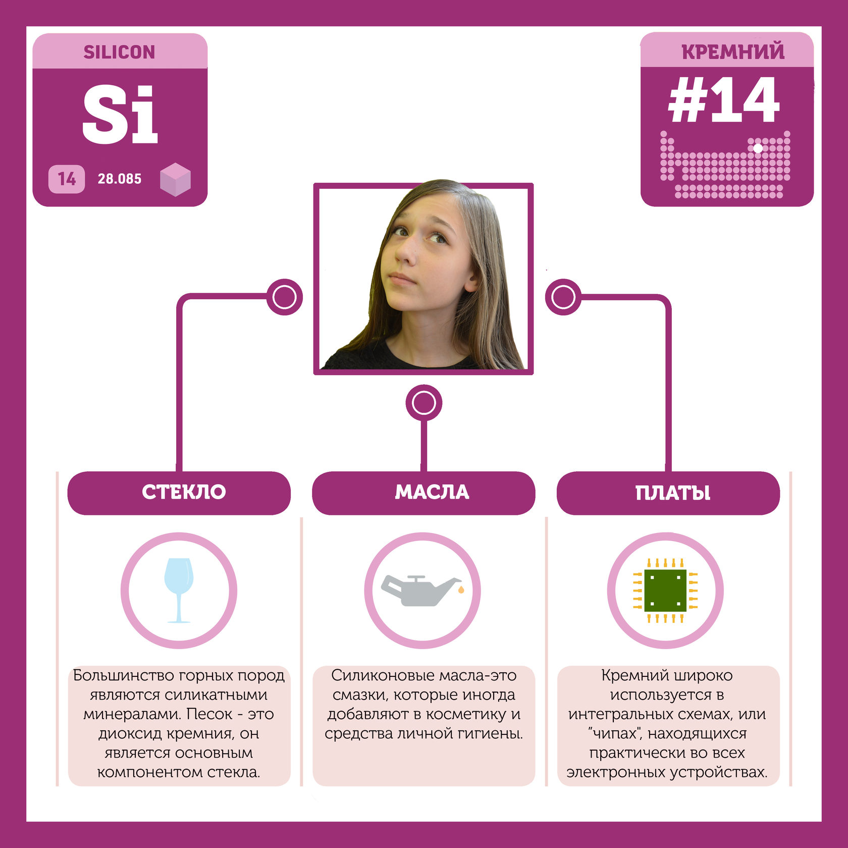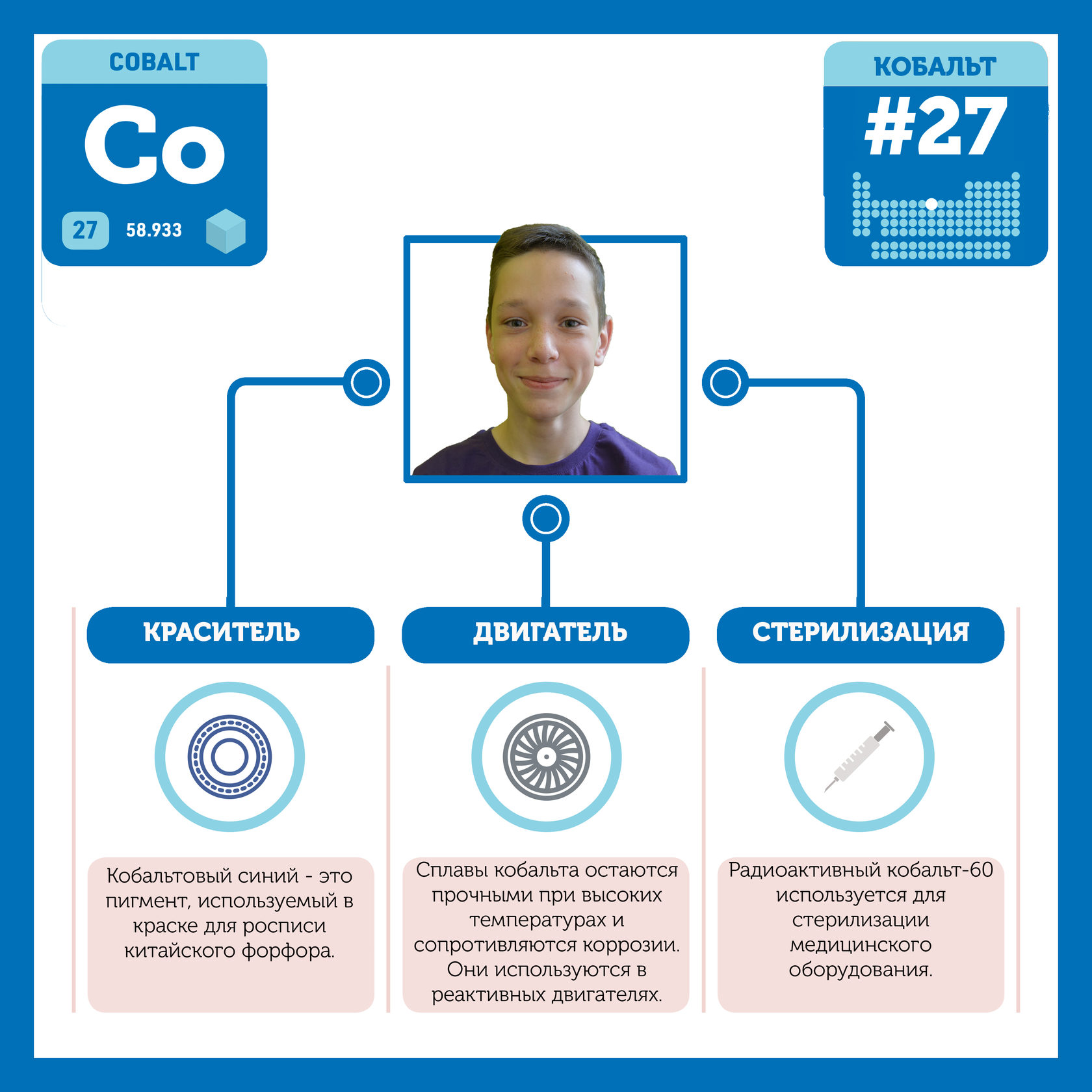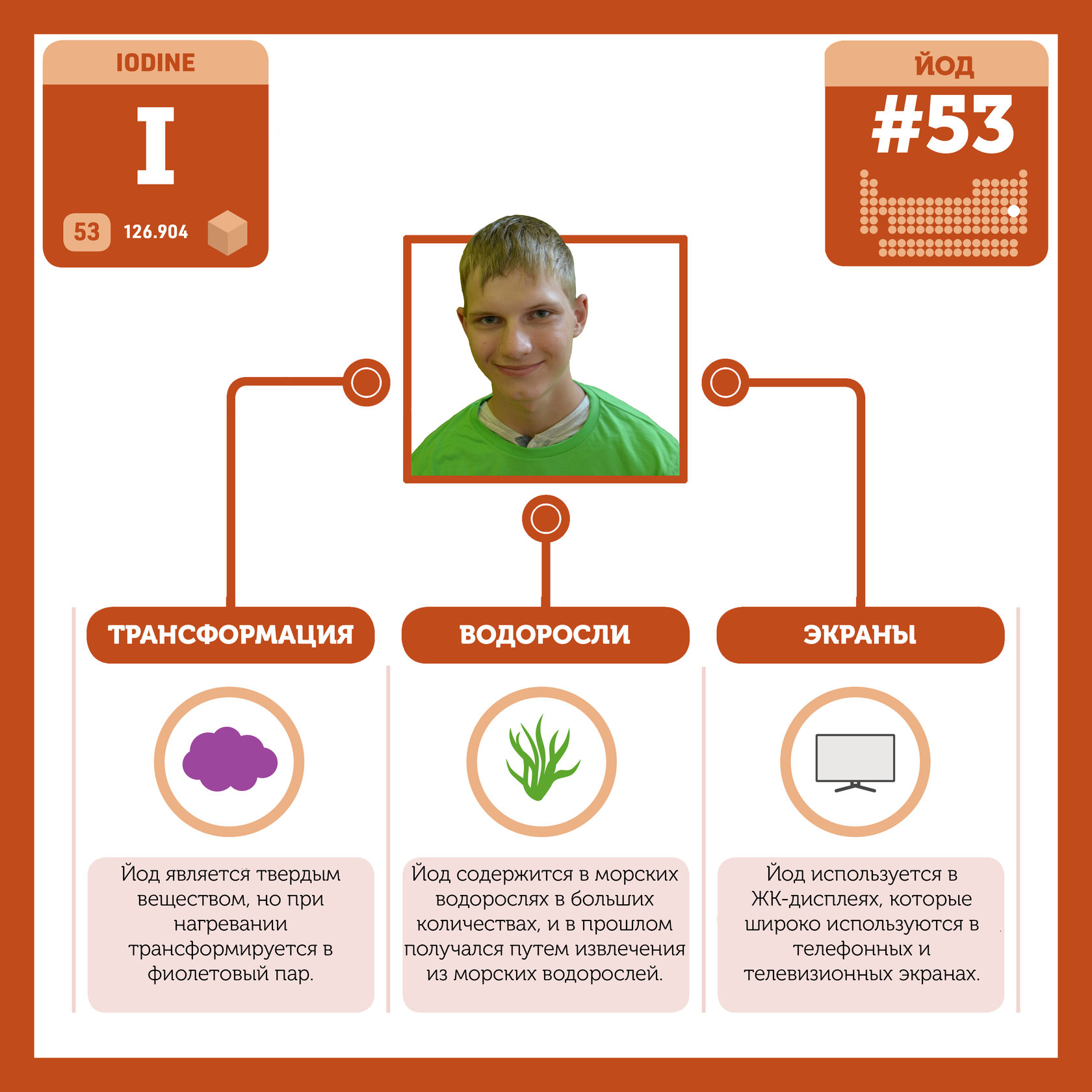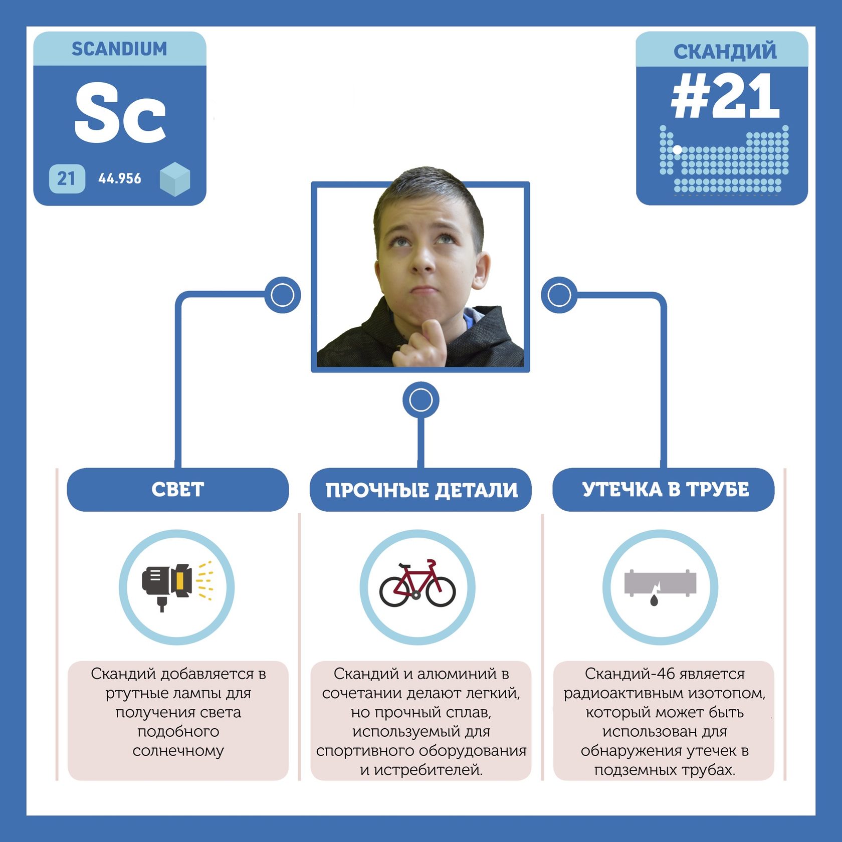 Для того, чтобы иметь возможность говорить от лица каждого элемента, ребята придумали персонажей - Росариков. Название Росарик произошло от сокращенной формулировки "участник детского отраслевого лагеря "Поколение Росатома" и по сути своей олицетворяет собой Атом вещества.