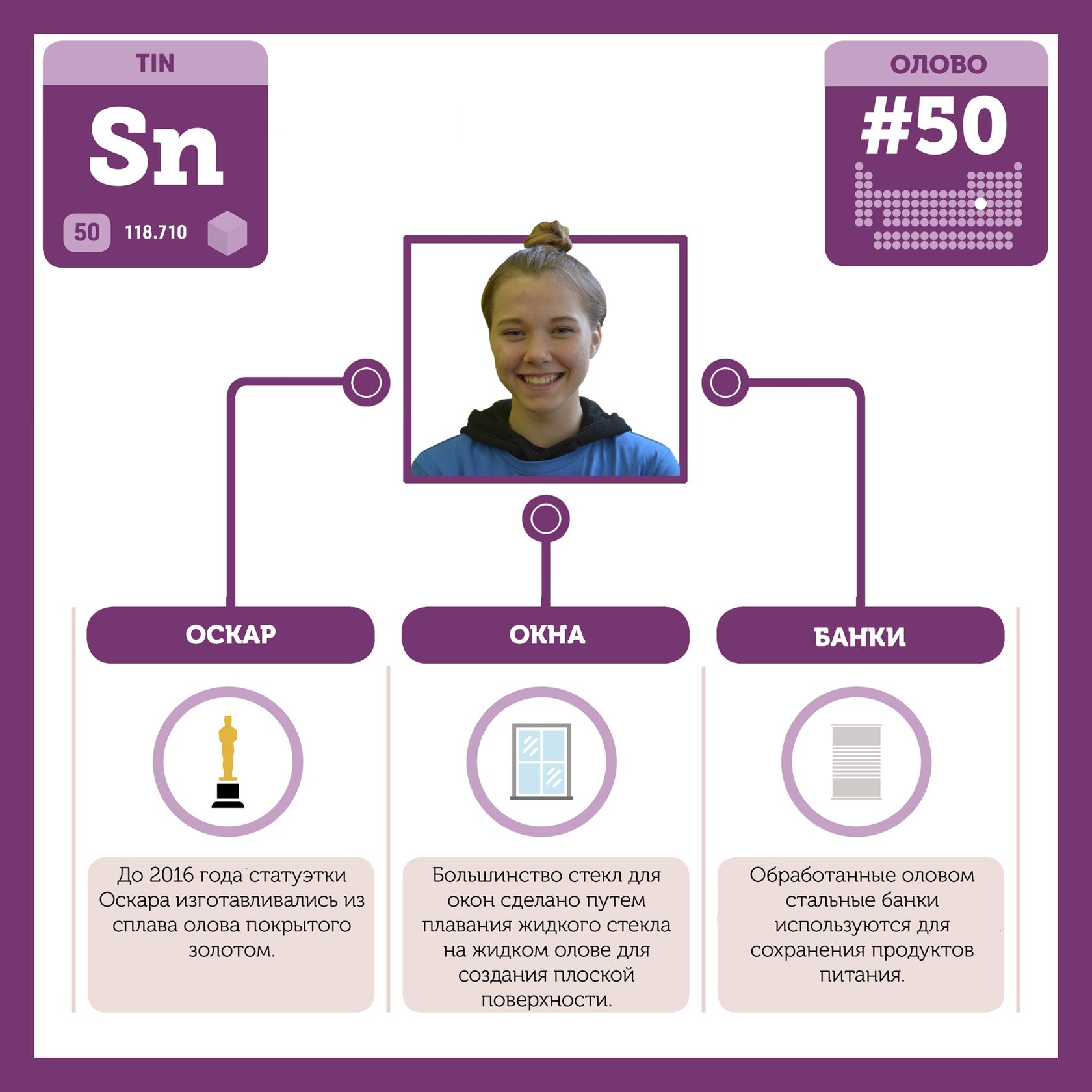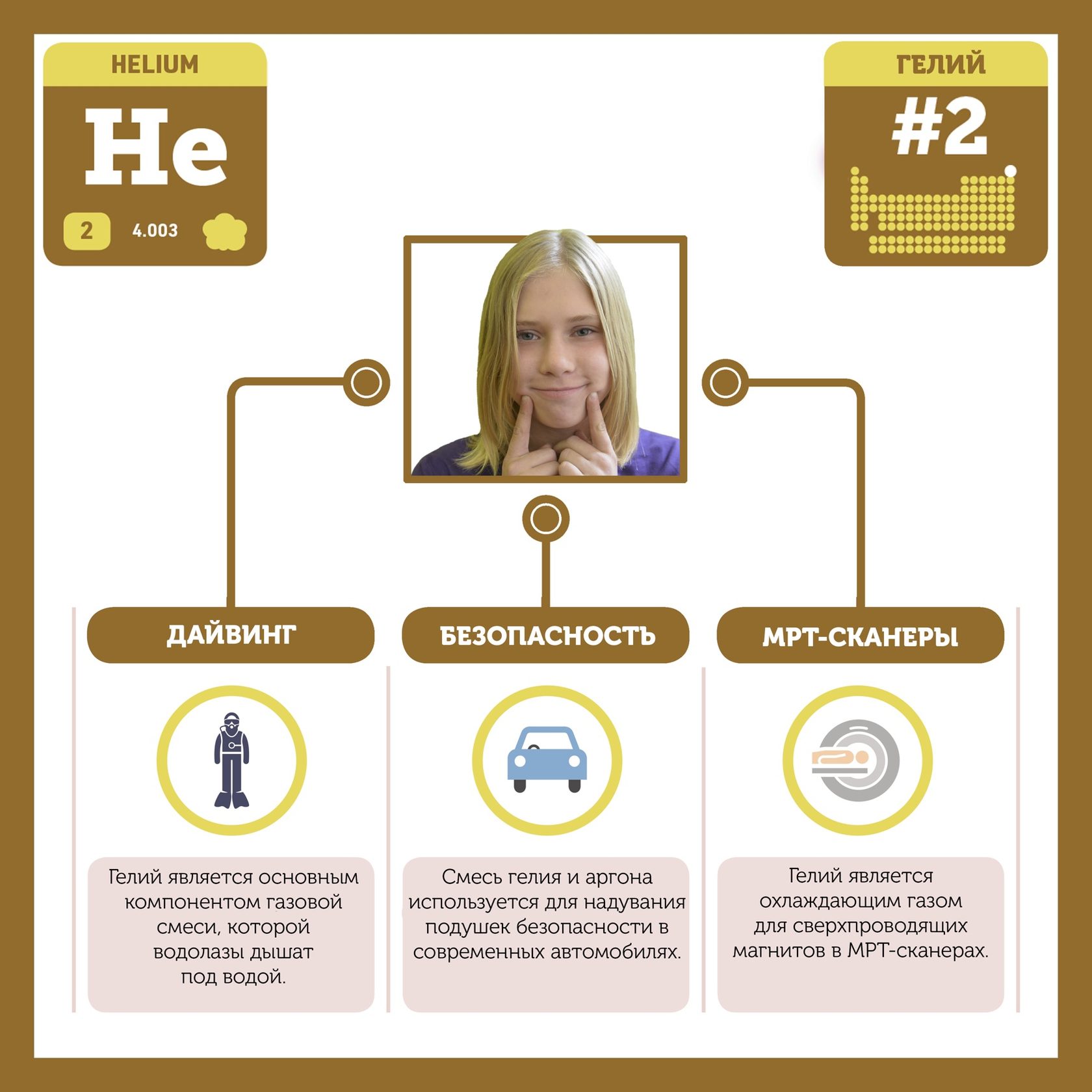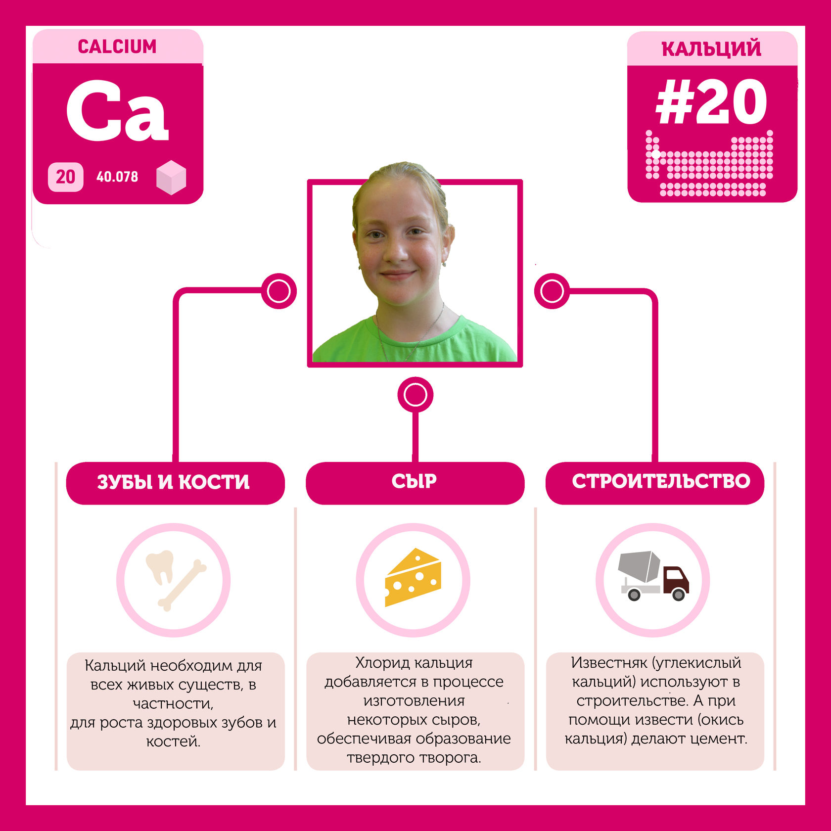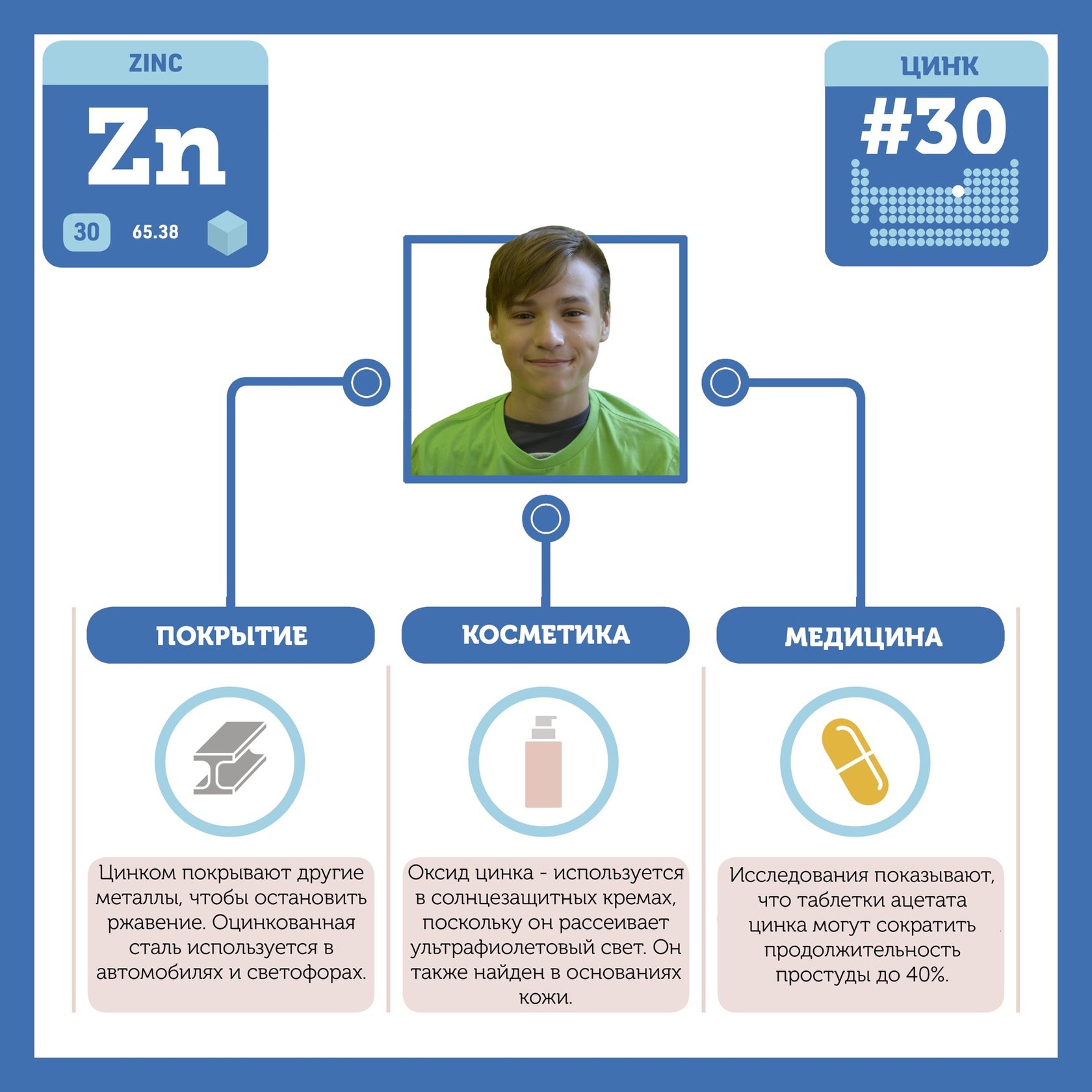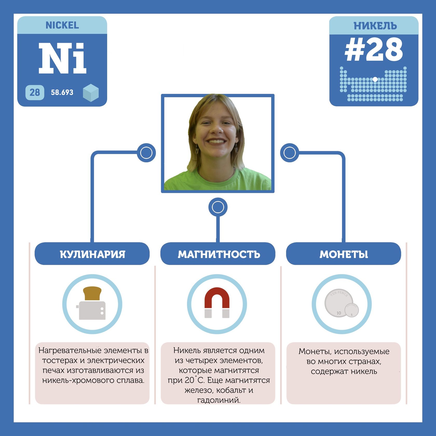 Для того, чтобы иметь возможность говорить от лица каждого элемента, ребята придумали персонажей - Росариков. Название Росарик произошло от сокращенной формулировки "участник детского отраслевого лагеря "Поколение Росатома" и по сути своей олицетворяет собой Атом вещества.