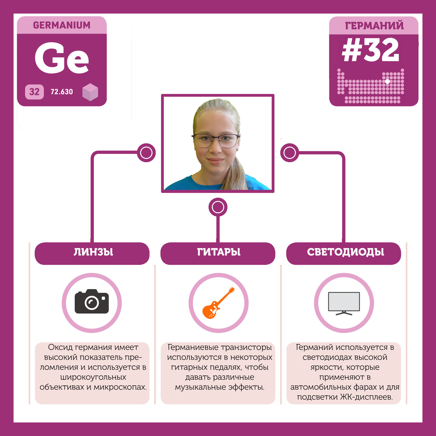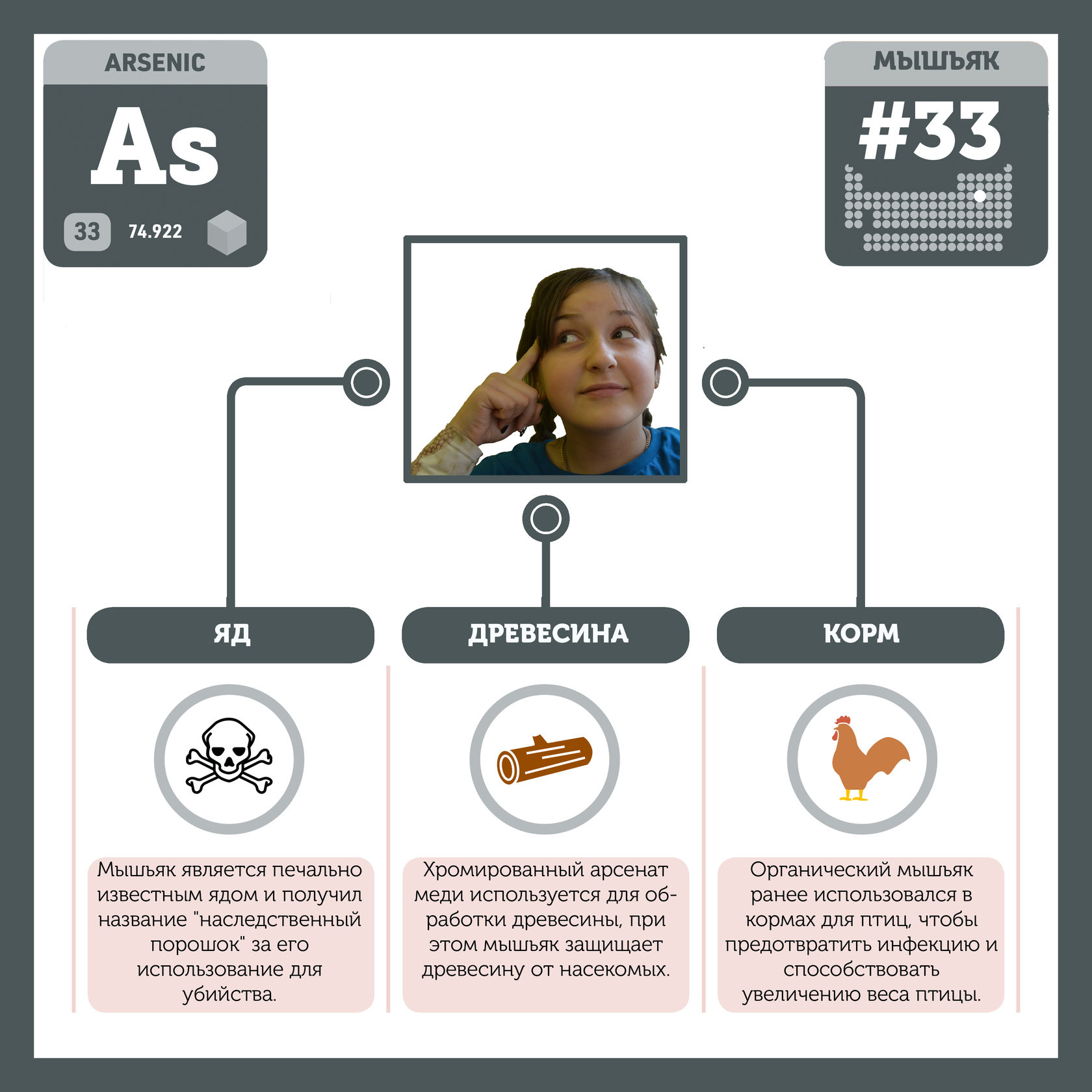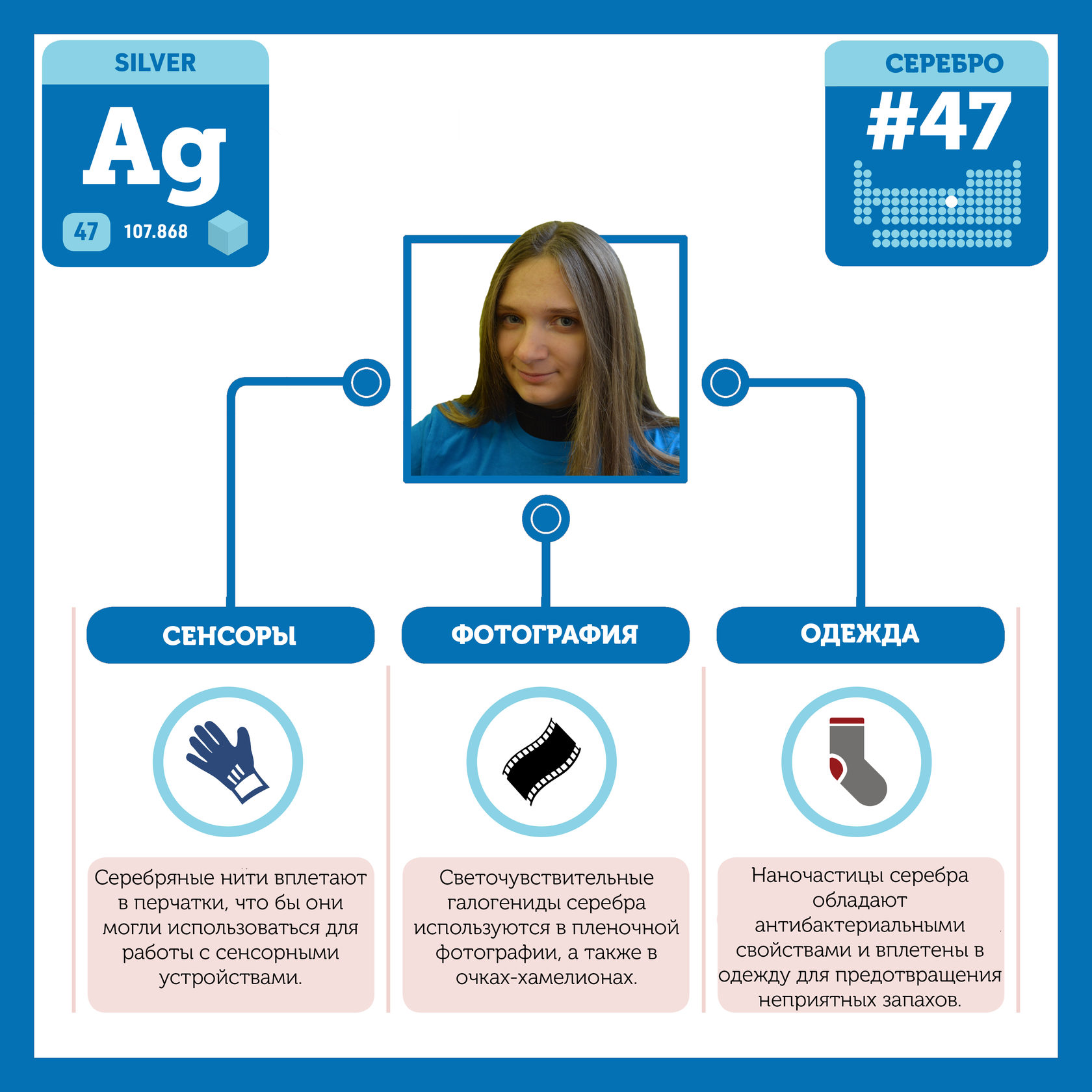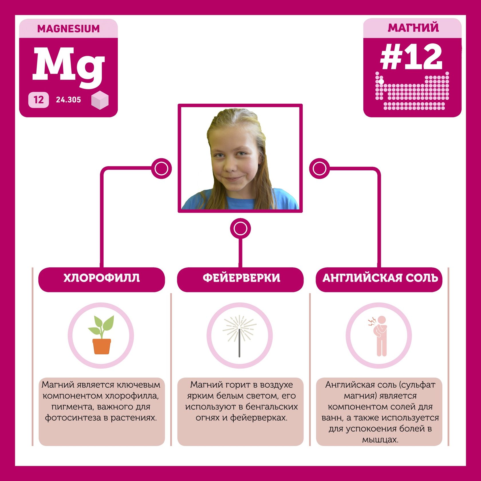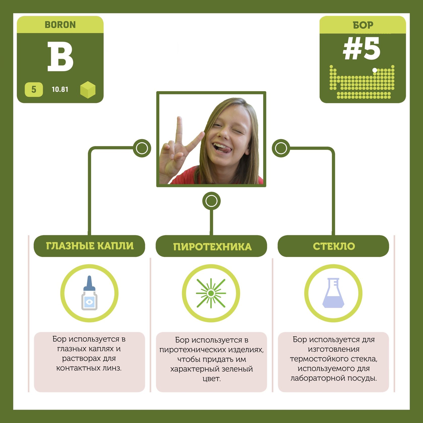 Для того, чтобы иметь возможность говорить от лица каждого элемента, ребята придумали персонажей - Росариков. Название Росарик произошло от сокращенной формулировки "участник детского отраслевого лагеря "Поколение Росатома" и по сути своей олицетворяет собой Атом вещества.