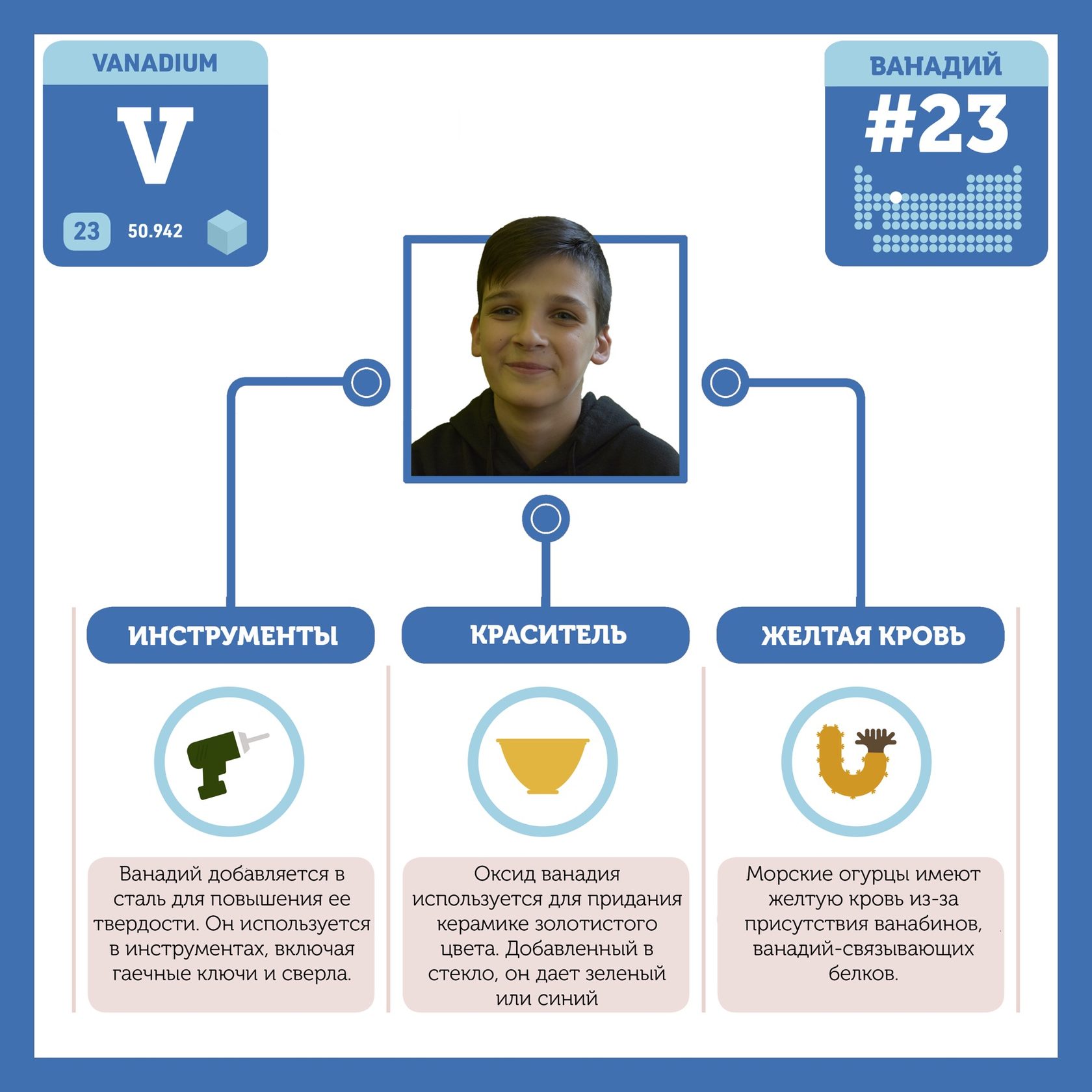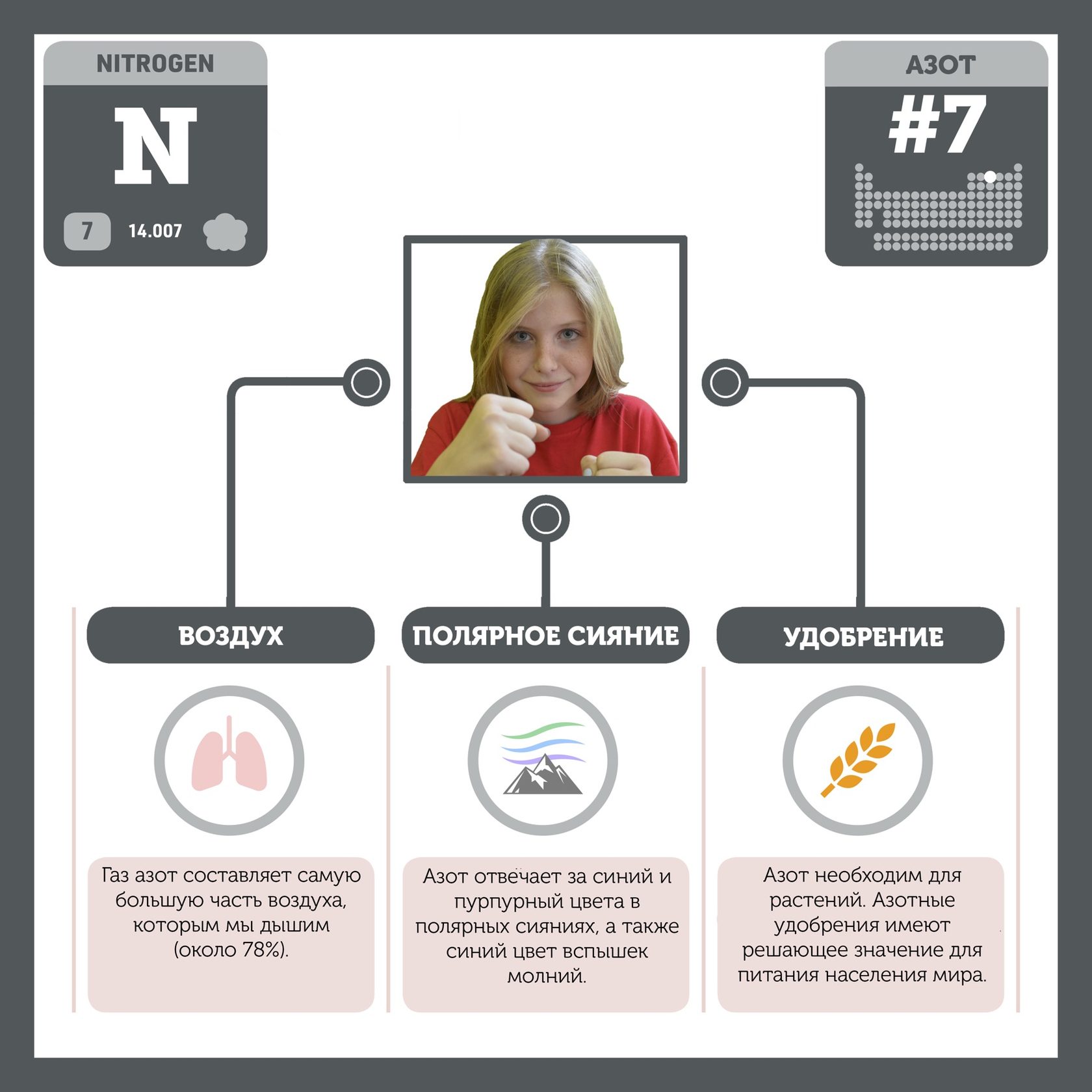 В таблице школьники постарались отобразить роль каждого химического элемента в этом регионе Земли. Проект создан с целью популяризации естественнонаучных областей в проекции на Северный Морской Путь, Арктику, а также для того, чтобы обратить внимание на острые вопросы экологии, безопасности, природопользования, энергоснабжения и сохранения биологических видов за Полярным кругом.